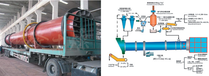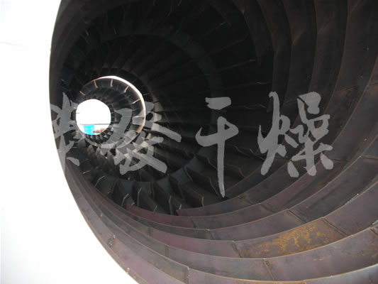 濕物料從干燥機(jī)一端投入后,在內(nèi)筒均布的抄板器翻動下,物料在干燥器內(nèi)均勻分布與分散,并與并流(逆流)的熱空氣充分接觸,加快了干燥傳熱,傳至推動力。在干燥過程中,物料在帶有傾斜度的抄板和熱氣流的作用下,可調(diào)控地運動至干燥機(jī)另一段星形卸料閥排出成品。