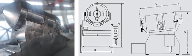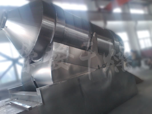 EYH二維混料機(jī)的轉(zhuǎn)筒可同時(shí)進(jìn)行二個(gè)運(yùn)動(dòng),一個(gè)為轉(zhuǎn)筒的轉(zhuǎn)動(dòng),另一個(gè)為轉(zhuǎn)筒隨擺動(dòng)架的擺動(dòng)。被混合物料在轉(zhuǎn)筒內(nèi)隨轉(zhuǎn)筒轉(zhuǎn)動(dòng)、翻轉(zhuǎn)、混合的同時(shí),又隨轉(zhuǎn)筒的擺動(dòng)而發(fā)生左右來(lái)回的摻混運(yùn)動(dòng),在這兩個(gè)運(yùn)動(dòng)的共同作用下,物料在短時(shí)間內(nèi)得到充分的混合。EYH二維混料機(jī)適合所有粉、粒狀物料的混合。
